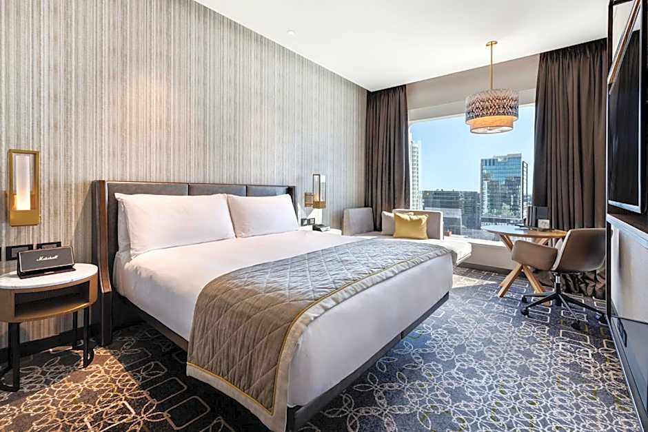 Room description: Located on level 5 and above, views of Hay or King Street. Includes modern bathroom with luxury amenities, rain shower, Nespresso machine and chaise lounge by window. Number of this type: 60 Room size: 27 sqm Maximum Occupancy: 2 adults