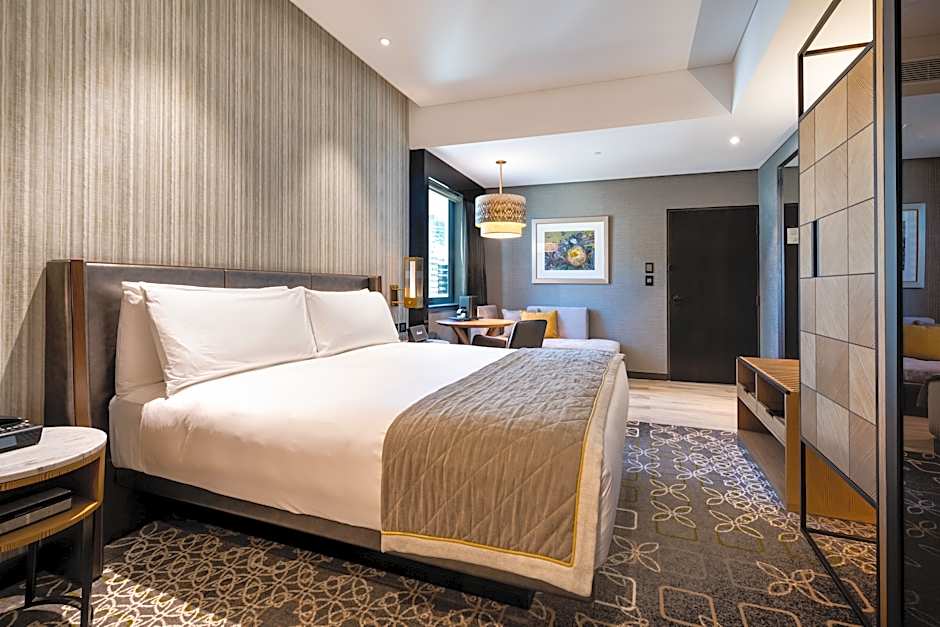 Room description: Located on level 5 and above, views of Hay or King Street. Includes modern bathroom with luxury amenities, rain shower, Nespresso machine and chaise lounge by window. Number of this type: 23 Room size: 27 sqm Maximum Occupancy: 3 adults + 1 child or 2 adults + 2 children (children 12 under)